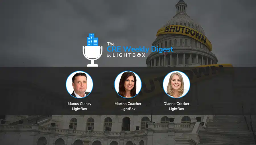 As we finish week two of the federal shutdown, markets shifted into risk-off mode while investors fly without official data. The team unpacks the Fed’s September minutes (cuts likely, cadence uncertain), lean on alternative signals (Carlyle’s real-time payrolls), and explains why the labor outlook is fragile. In CRE capital markets, the team breaks down how continuation vehicles are bridging liquidity, why loan modifications are up sharply yet still a small share of bank CRE, and what Fifth Third–Comerica says about scale and credit resilience. Our LightBox CRE Activity Index jumped to 116.8, pointing to broader listings and steady diligence pipelines heading into Q4. Sector moves: deep office repricing in DTLA, selective Sun Belt trades, Silicon Valley land rushing to data-center use, Dollar Tree’s owner-user distribution center in Phoenix, and creative offerings to furloughed workers in DC. And Martha gives a special sign off that’s worth a listen.